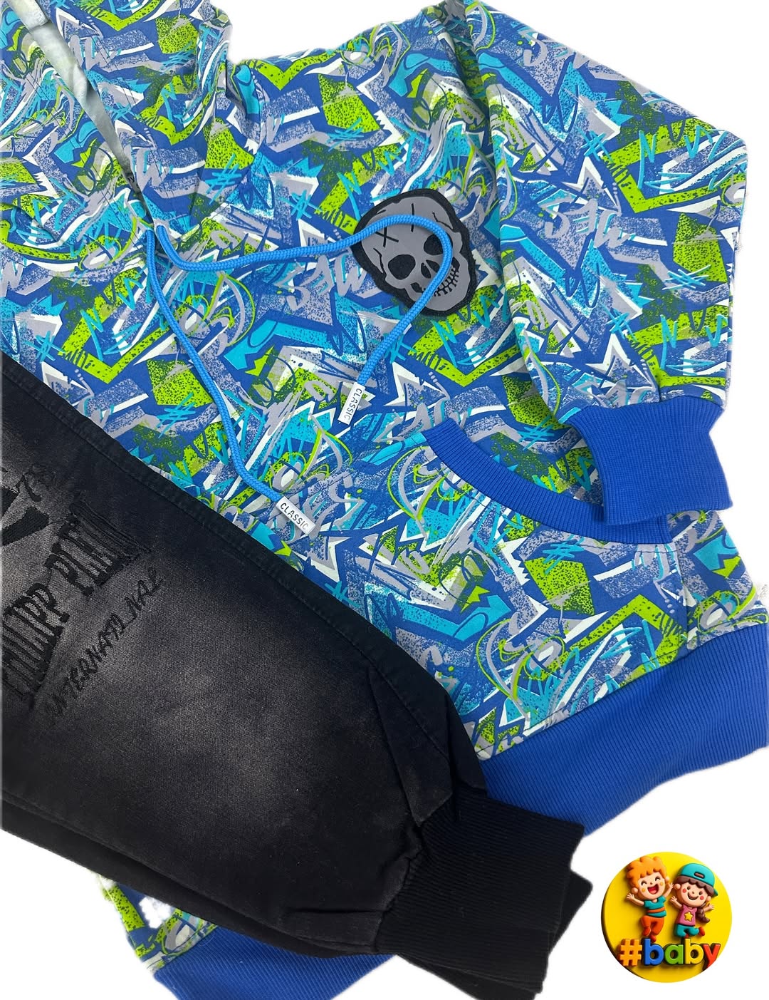 این هودی شلوار عسله لا مصب . @hashtaag_baby . .پاییز که میاد، استایل هم گرمی خودش رو میخواد هودی نرم + شلوار جین = راحتی و استایل در یک نگاه! . ضدحساسیت سایز بندی از۵۵ . # #